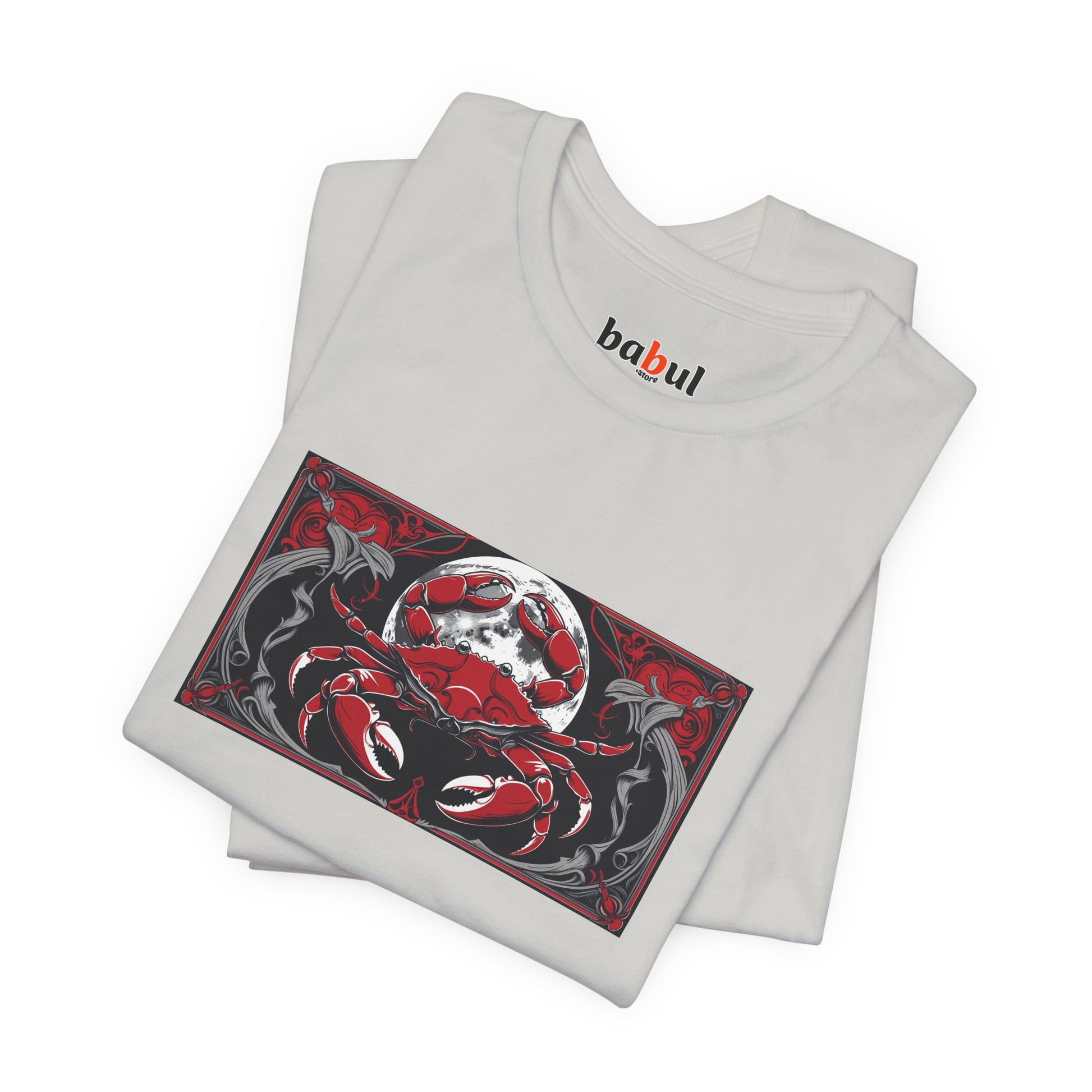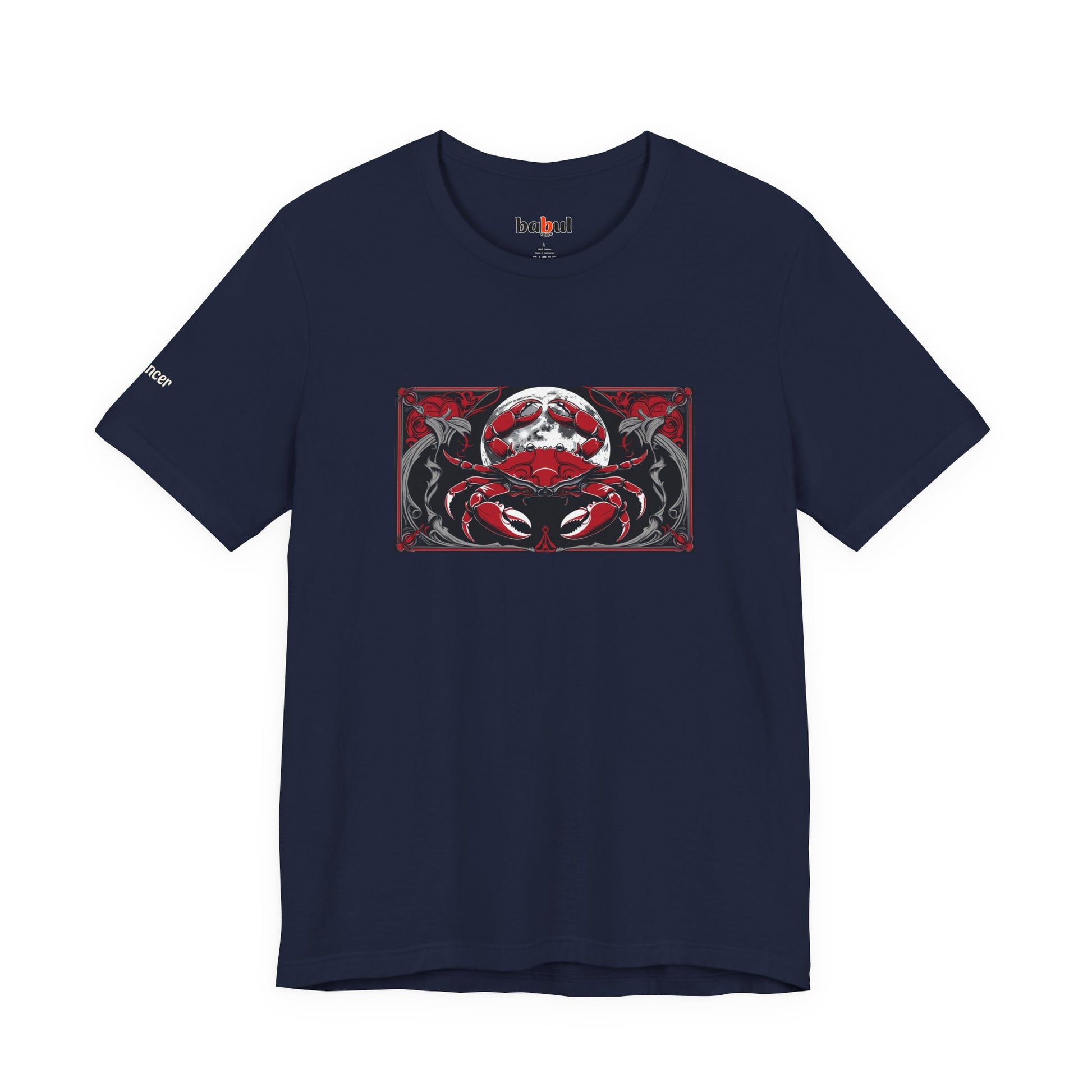 Cancro - T-shirt Zodiaco gotico. Grafica rossa sul davanti. Zodiaco nell'ombra.