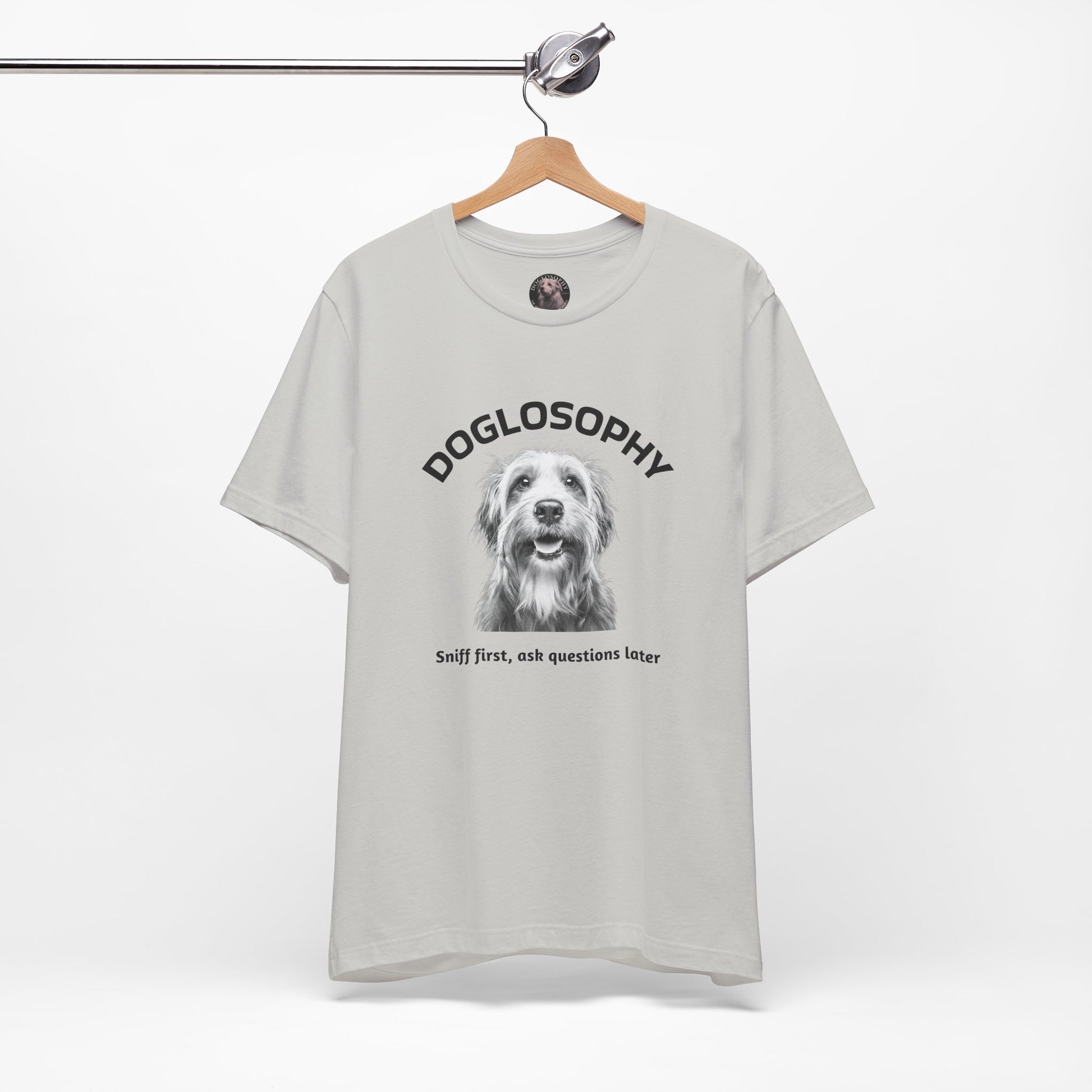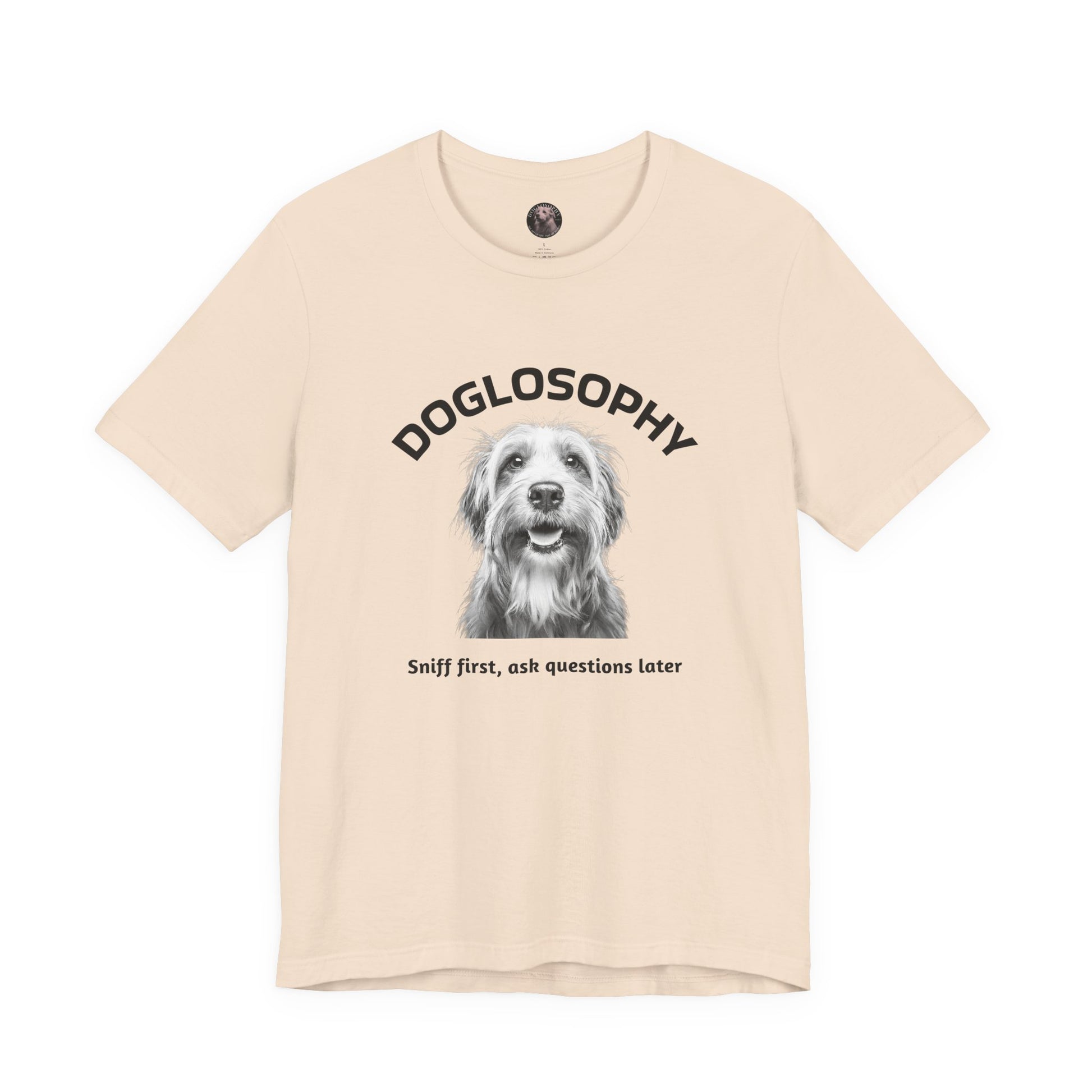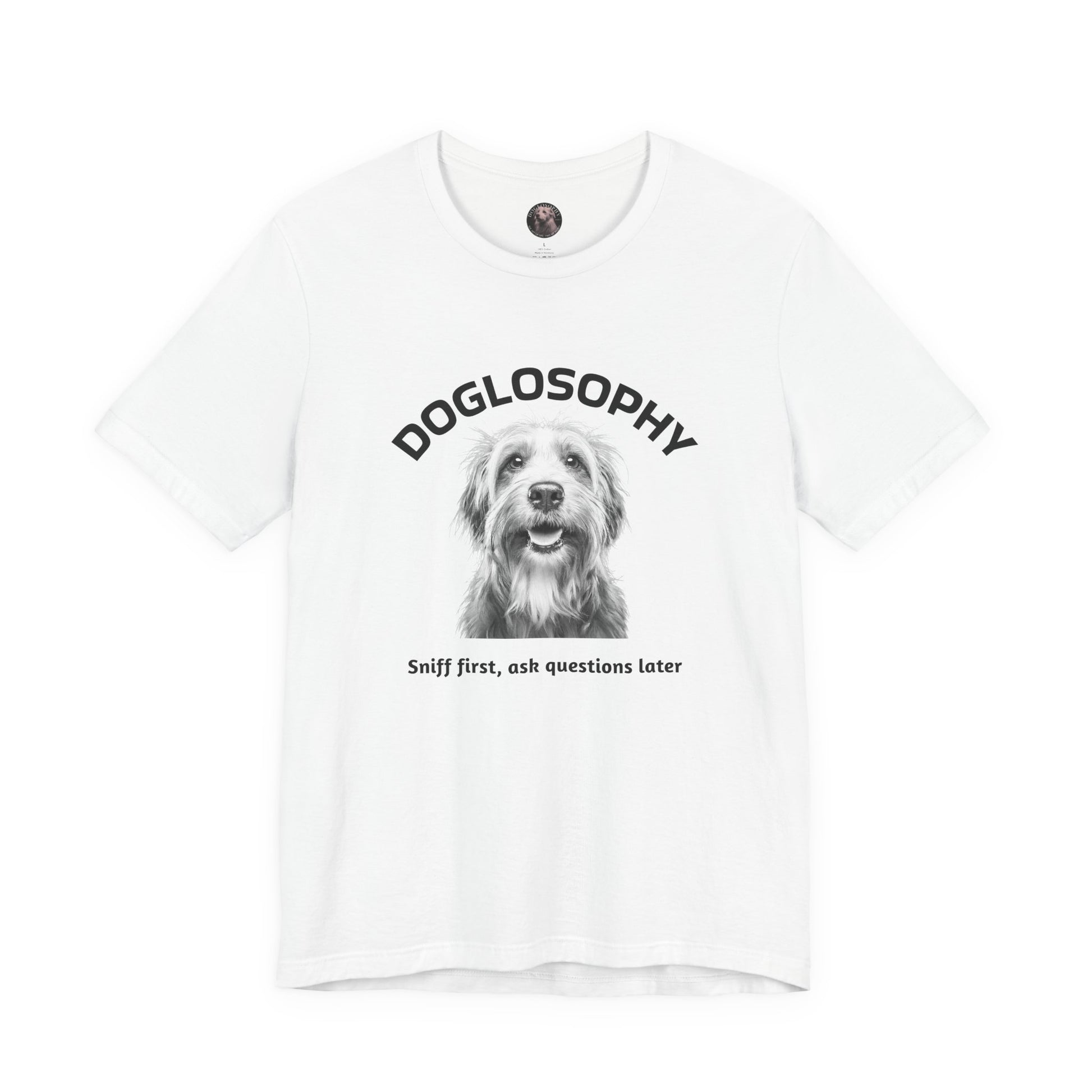 Maglietta a maniche corte unisex Doglosophy – Design "Prima annusa, poi fai domande"