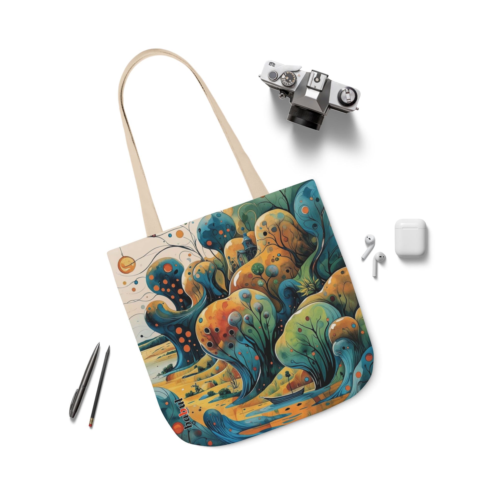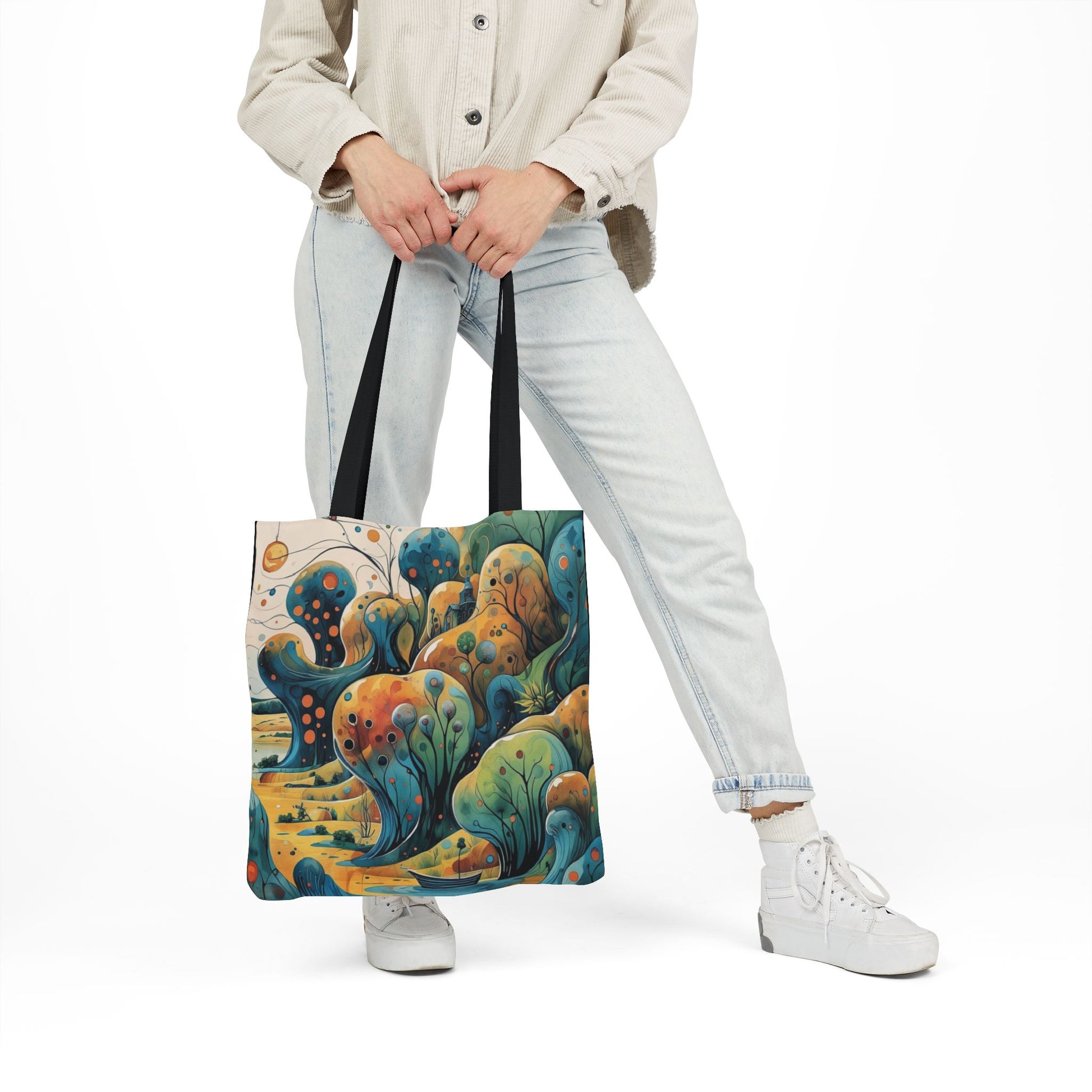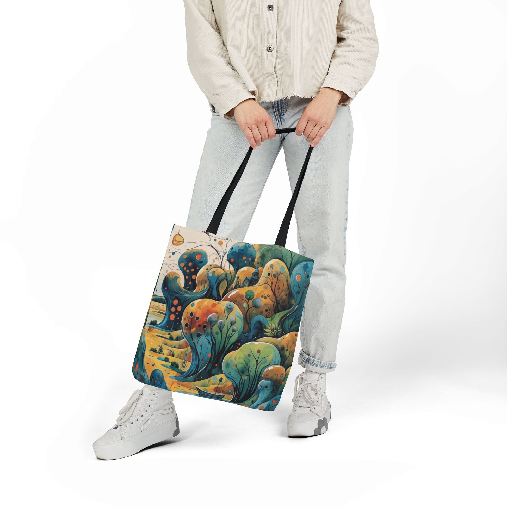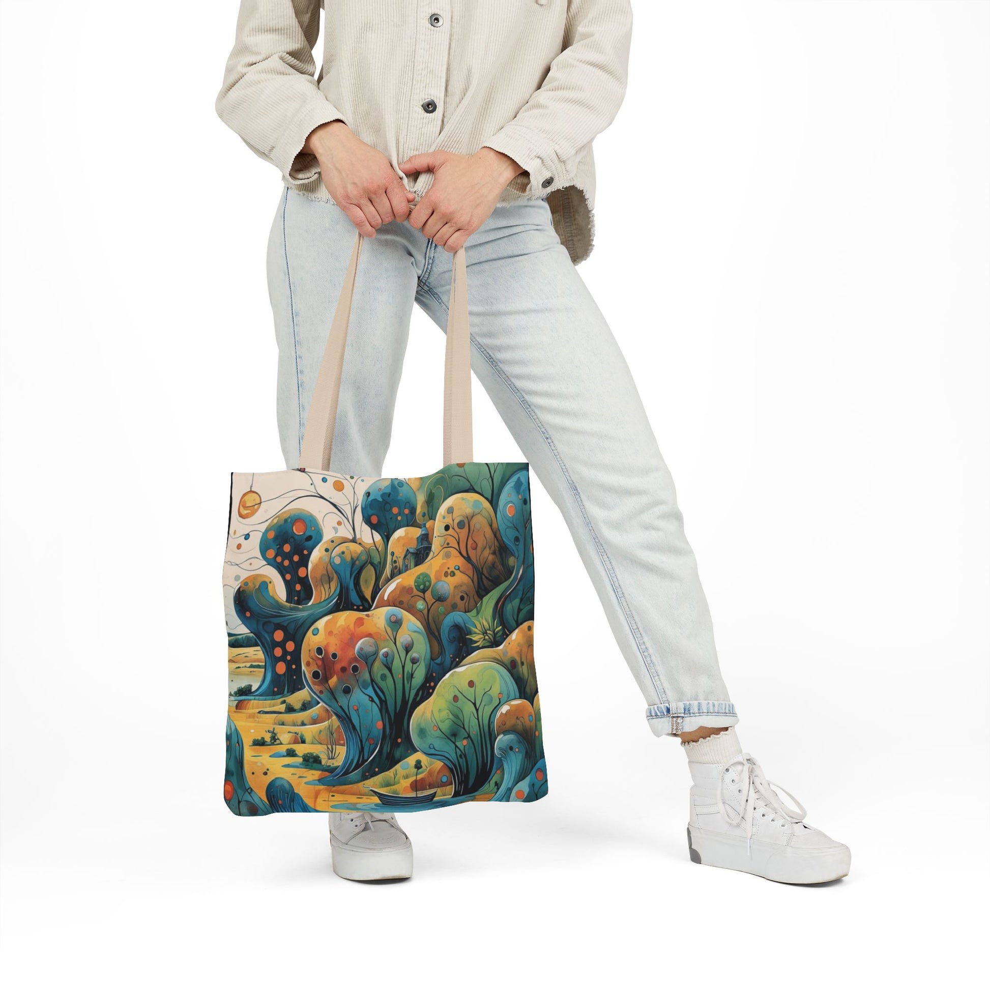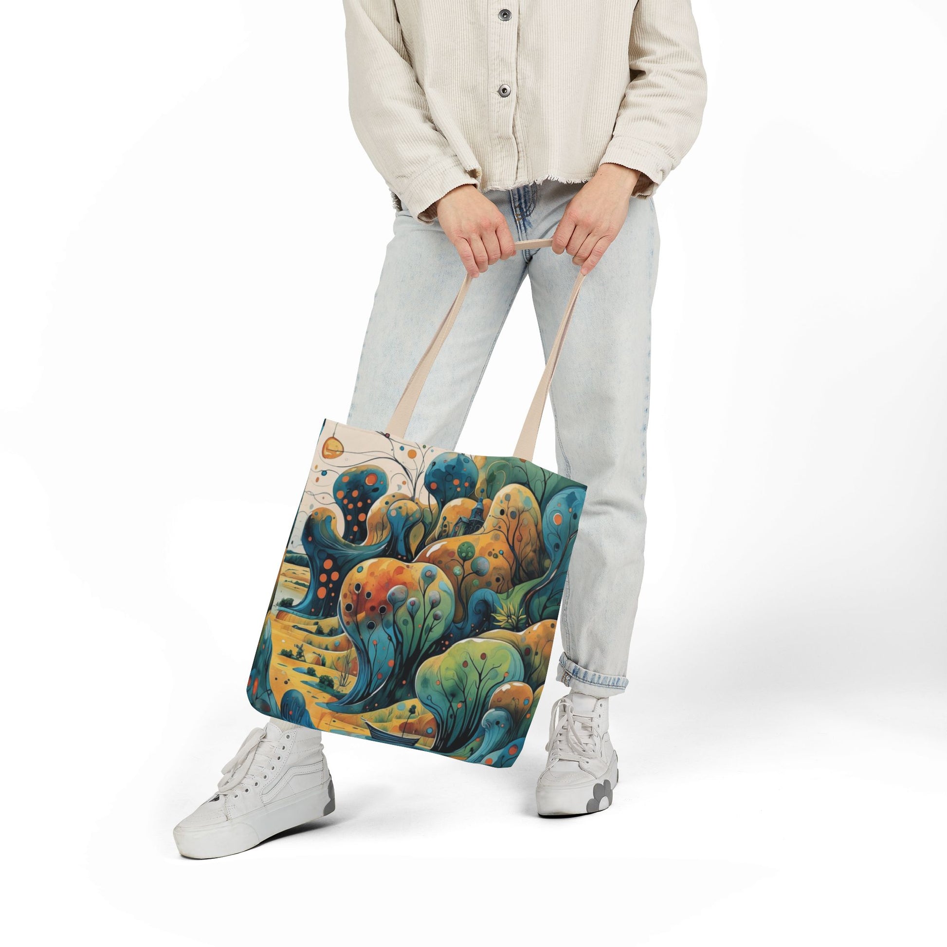 La collezione Oniric Visions nasce proprio da questo desiderio: trasformare una semplice borsa di tela in un portale verso l'onirico, una compagna di viaggio capace di trasportare non solo i propri effetti personali ma anche il proprio mondo interiore. Oniric Visions non segue le tendenze, ma le visioni: tonalità tenui, dettagli che sembrano emergere da un acquerello, linee che raccontano storie senza parole. Queste borse sono pensate per chi sa sognare, per chi sa perdersi in un orizzonte immaginario, per chi vuole esprimere la propria identità attraverso piccoli universi da indossare.