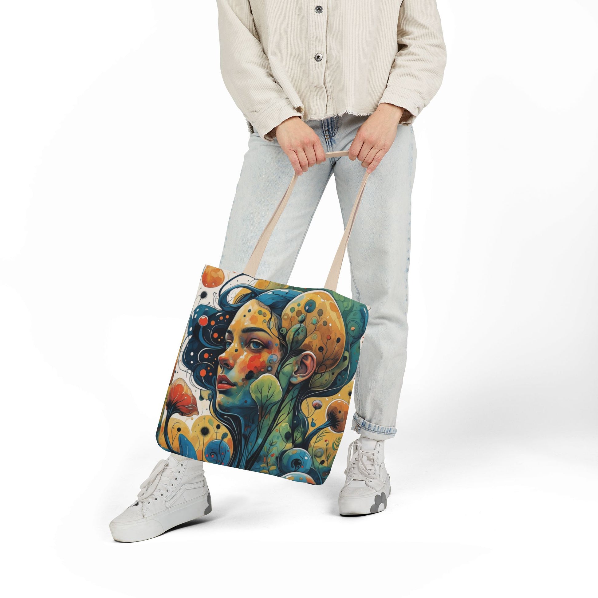 La collezione Oniric Visions nasce proprio da questo desiderio: trasformare una semplice borsa di tela in un portale verso l'onirico, una compagna di viaggio capace di trasportare non solo i propri effetti personali ma anche il proprio mondo interiore. Oniric Visions non segue le tendenze, ma le visioni: tonalità tenui, dettagli che sembrano emergere da un acquerello, linee che raccontano storie senza parole. Queste borse sono pensate per chi sa sognare, per chi sa perdersi in un orizzonte immaginario, per chi vuole esprimere la propria identità attraverso piccoli universi da indossare.