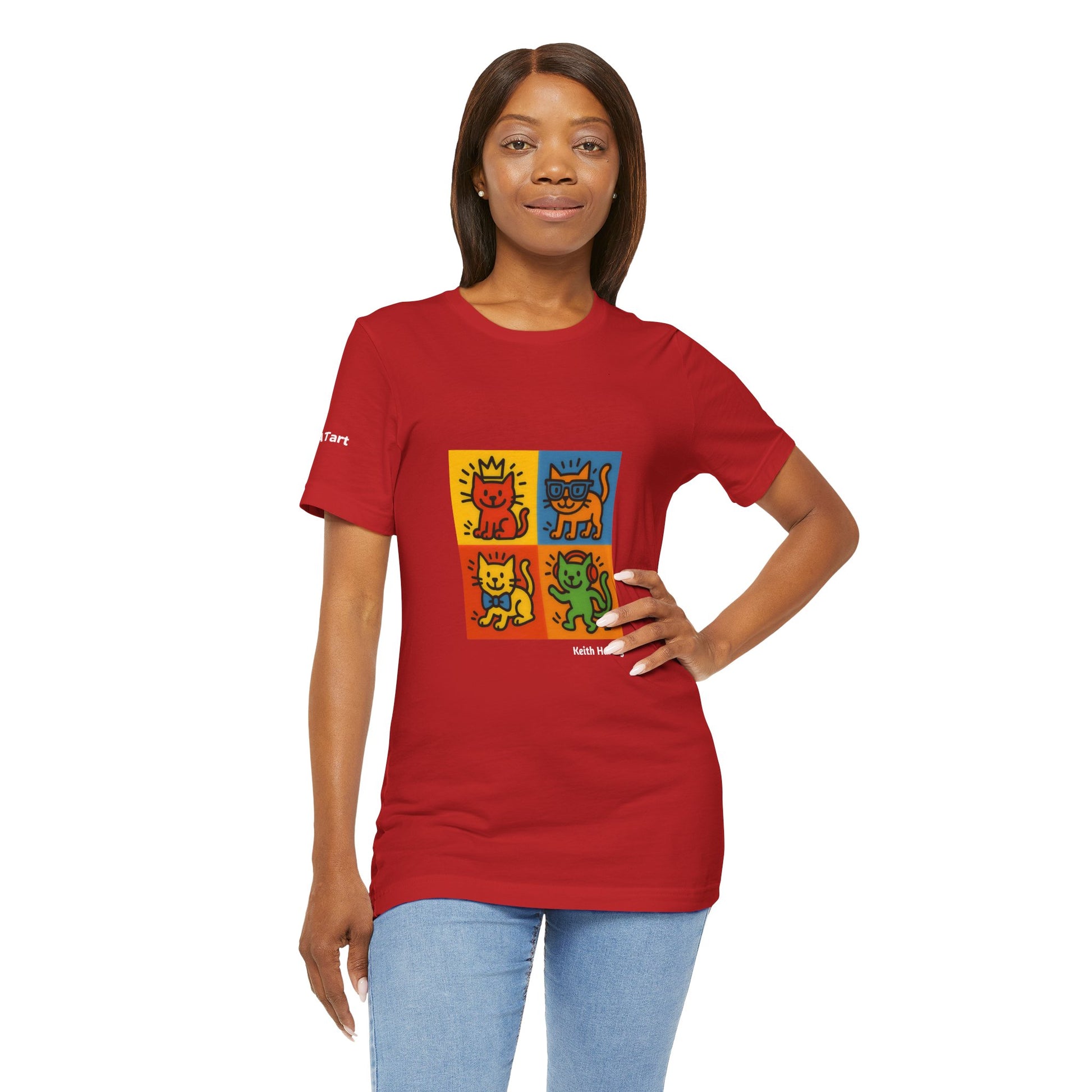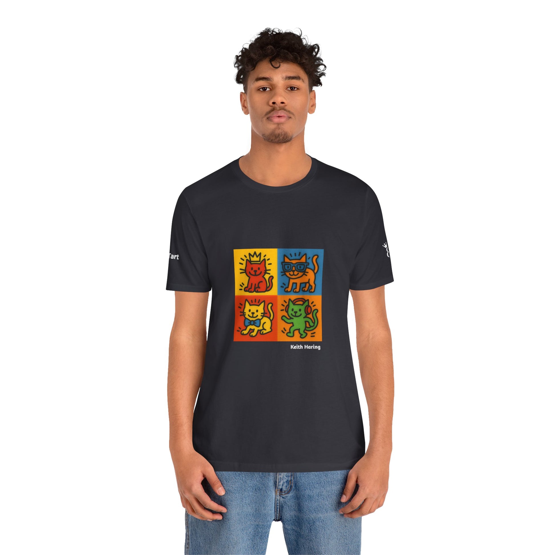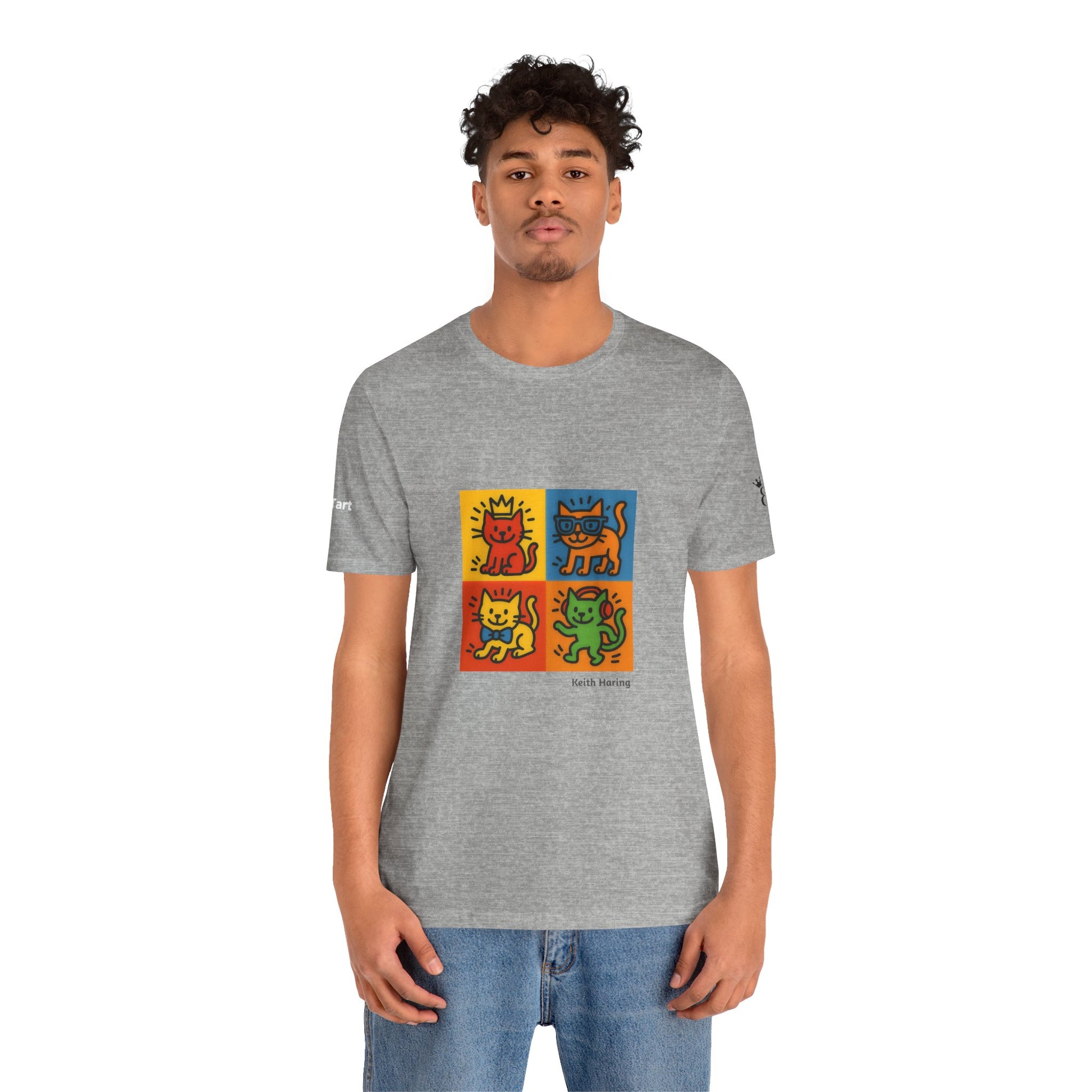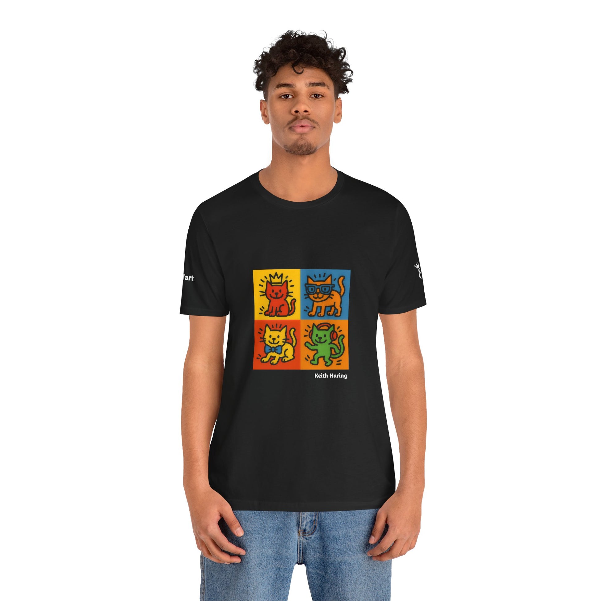 CATART Unisex Jersey Cat T-Shirt - KEITH HARING - Iconic Painting Reimagined with Cats