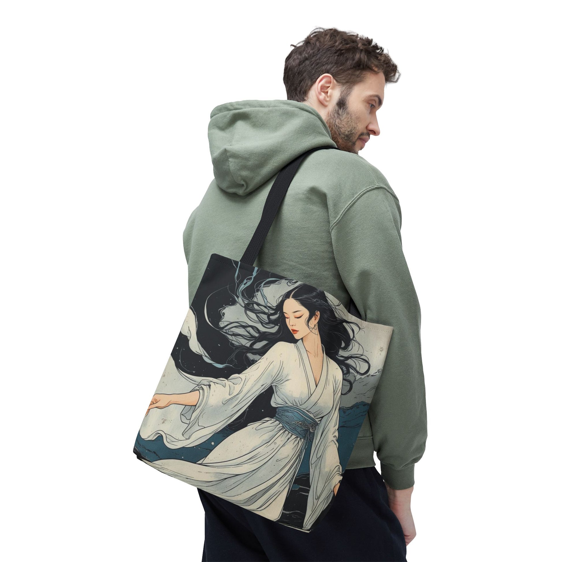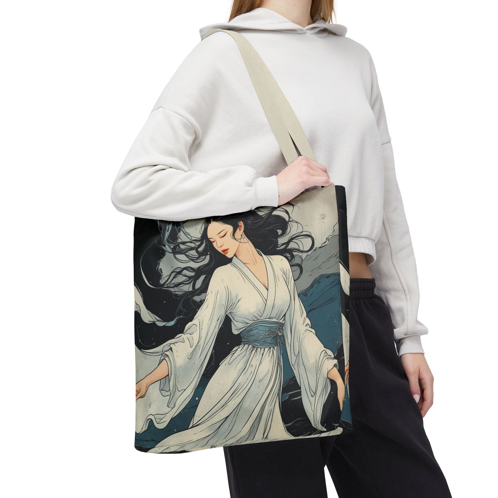 In this collection, Japanese tradition meets the primordial force of nature. Each tote bag becomes a small artistic manifesto, with refined and symbolic images inspired by the four elements: